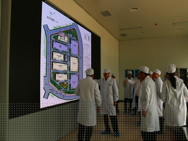 郭建新董事長一行首先來到國藥動保即將竣工的生產(chǎn)基地調(diào)研。占地180多畝的國藥動保新生產(chǎn)基地一期進入驗收準備階段,投入使用后將極大提高生產(chǎn)產(chǎn)能,滿足市場需求。調(diào)研組聽取了新基地概況匯報,仔細詢問了新基地建成投產(chǎn)后的產(chǎn)能以及在行業(yè)中的水平地位。在活疫苗車間,調(diào)研組仔細察看了各生產(chǎn)環(huán)節(jié),詳細了解了生產(chǎn)流程,對現(xiàn)有先進的的生產(chǎn)設(shè)備、潔凈的生產(chǎn)環(huán)境表示肯定。