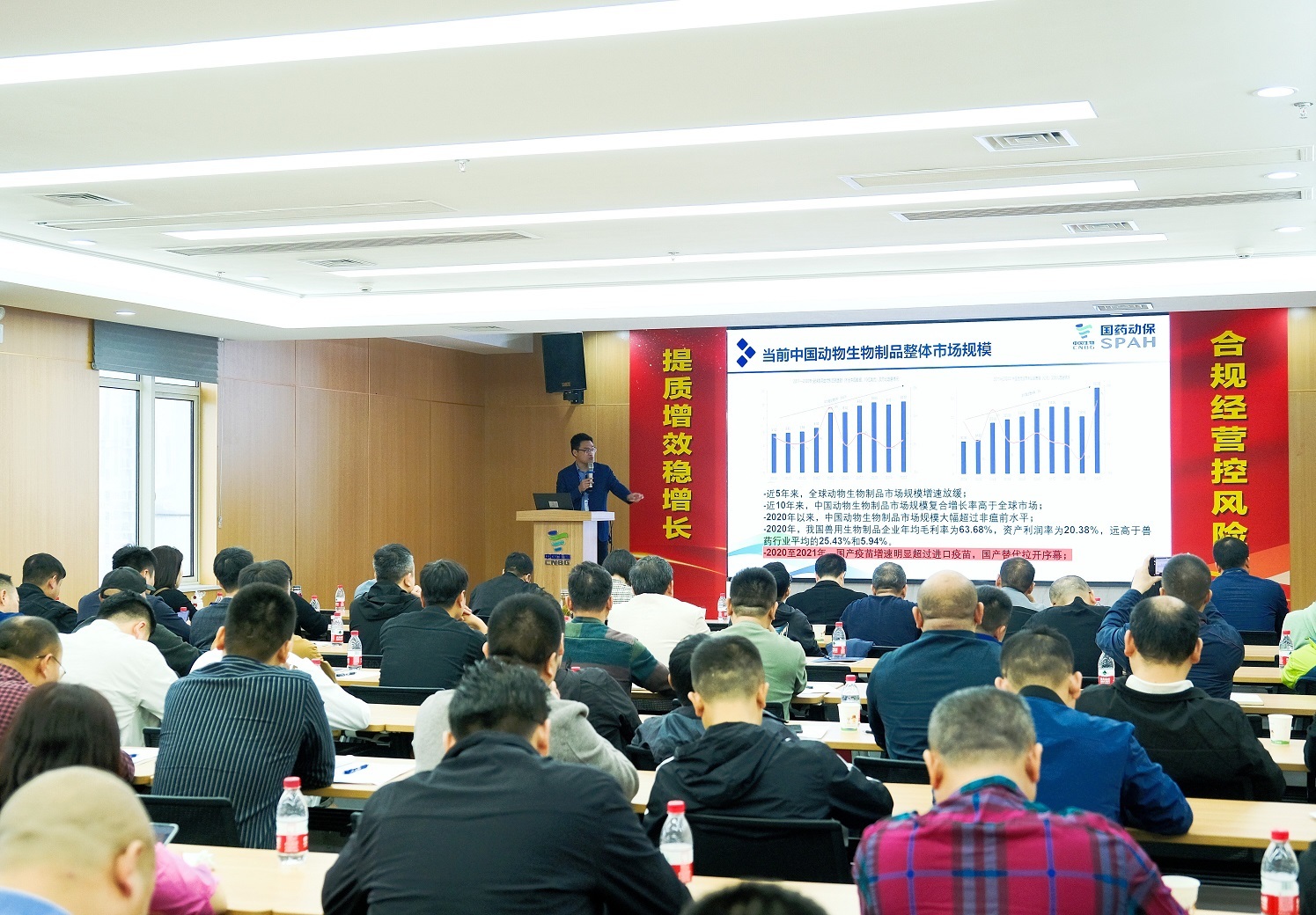 在養(yǎng)殖行業(yè)規(guī)模化、強免疫苗逐步放開背景下,獸藥疫苗行業(yè)市場化競爭日趨激烈。作為動物疫病防控全套解決方案“國家隊”提供商,國藥動保積極聯(lián)合渠道伙伴為用戶提供高效、優(yōu)質(zhì)的防疫產(chǎn)品和技術(shù)服務(wù),共同迎接行業(yè)發(fā)展機遇。國藥動保總經(jīng)理孫文、研發(fā)中心主任石寶蘭、營銷中心總經(jīng)理劉闖、市場總監(jiān)徐敏出席活動,并就國藥動保概況及發(fā)展規(guī)劃、產(chǎn)品的研發(fā)思路及相關(guān)技術(shù)要點、公司大產(chǎn)品的市場定位與市場營銷策略等方面作了全面介紹與闡述,幫助渠道伙伴更好地開拓市場,與動保實現(xiàn)發(fā)展共贏。